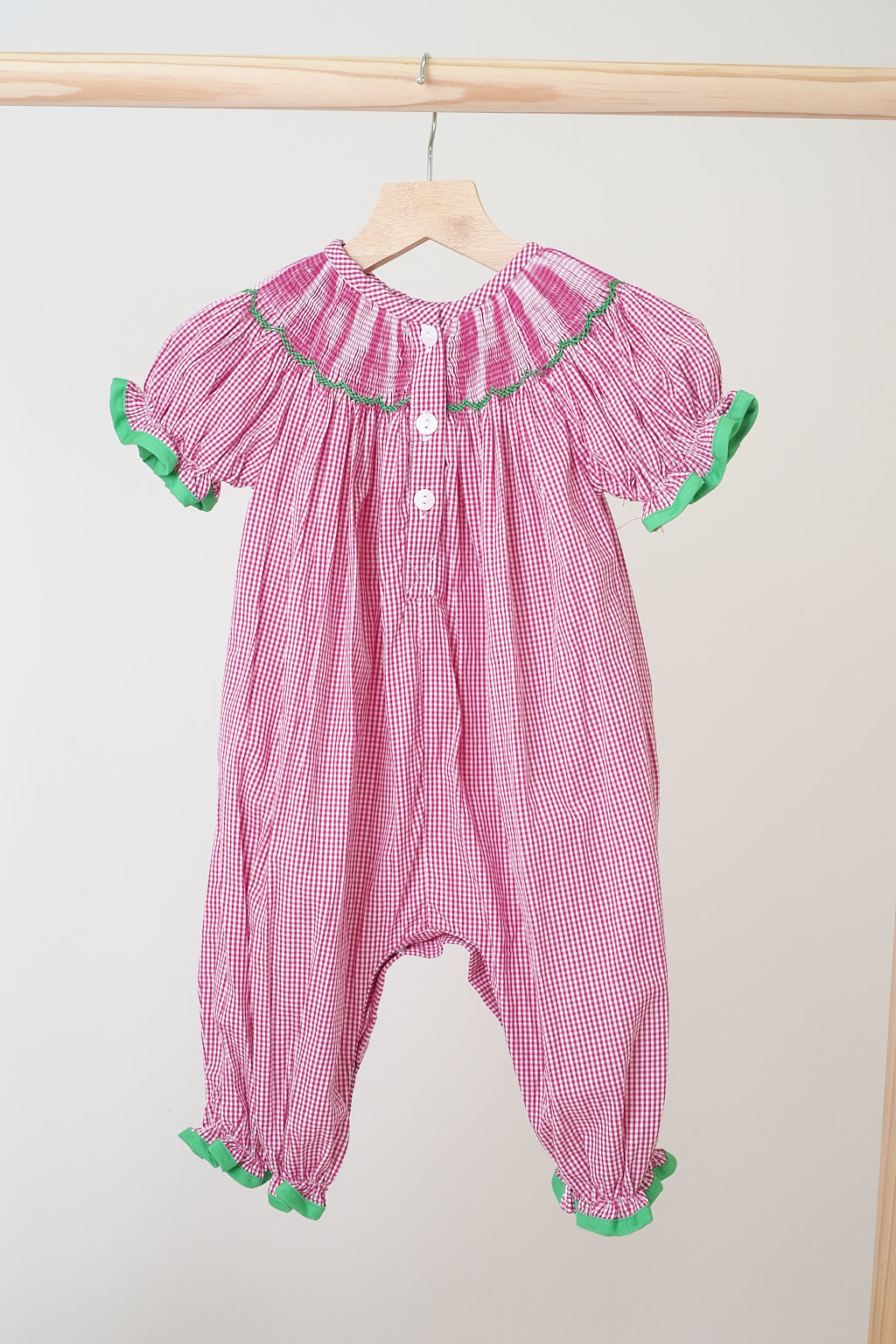 Pink joy hand smocked girl gingham romper - 3M is backordered and will ship as soon as it is back in stock.