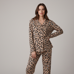 Brown leopard bamboo mom pajama set - S is backordered and will ship as soon as it is back in stock.