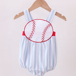 Blue baseball applique bubble - Newborn is backordered and will ship as soon as it is back in stock.