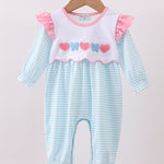 Blue bear embroidery ruffle romper