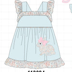 Hop into springtime style with this adorable blue floral bunny applique ruffle dress! Featuring a charming bunny design and delicate floral accents, this dress brings whimsical fun to any little one's wardrobe. Soft ruffles add movement and playful dimension, perfect for twirling and playtime adventures. The cheerful blue palette pairs beautifully with the sweet bunny motif, making it an instant favorite for Easter celebrations, garden parties, or everyday wear. Comfortable and cute, this dress captures that perfect blend of style and joy that kids love.