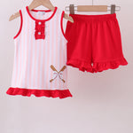 Strike a pose in this adorable pink baseball bow stripe ruffle shorts set! Perfect for little athletes and fashion lovers alike, this playful two-piece features classic striped detailing, charming ruffled edges, and a signature bow accent that adds instant personality. Whether she's heading to the ballpark or playing dress-up, this set combines sporty vibes with sweet, girly style. Comfortable and cute—the ultimate game-day essential!