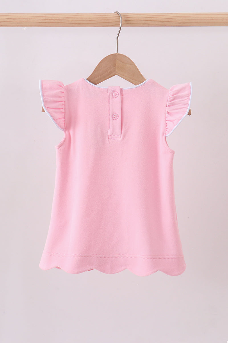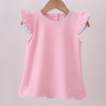 Pink flutter sleeve scalloped top