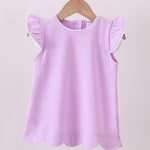 Twirl into spring with this charming purple flutter sleeve top! Delicate scalloped edges frame the neckline with feminine flair, while the playful flutter sleeves add movement and personality to your everyday look. The soft purple hue pairs beautifully with denim, skirts, or tailored trousers for effortless style that works from brunch to evening plans. A versatile wardrobe essential that brings joy to any outfit.
