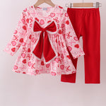 Red heart bow print pants set