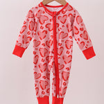 Adorable red heart print design meets cozy comfort in this bamboo zipper romper! Crafted from soft, breathable bamboo fabric, it's perfect for playtime or lounging. The convenient front zipper makes dressing a breeze, while the charming heart pattern adds a touch of sweetness. Gentle on delicate skin and easy to care for, this romper is an instant favorite for little ones who love style and comfort combined.
