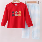 Red puppy embroidery gingham pants set - 12 Months is backordered and will ship as soon as it is back in stock.