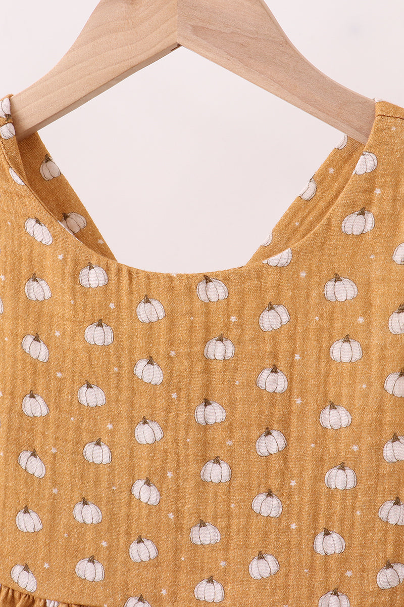 Premium pumpkin print muslin pants set - 12 Months is backordered and will ship as soon as it is back in stock.