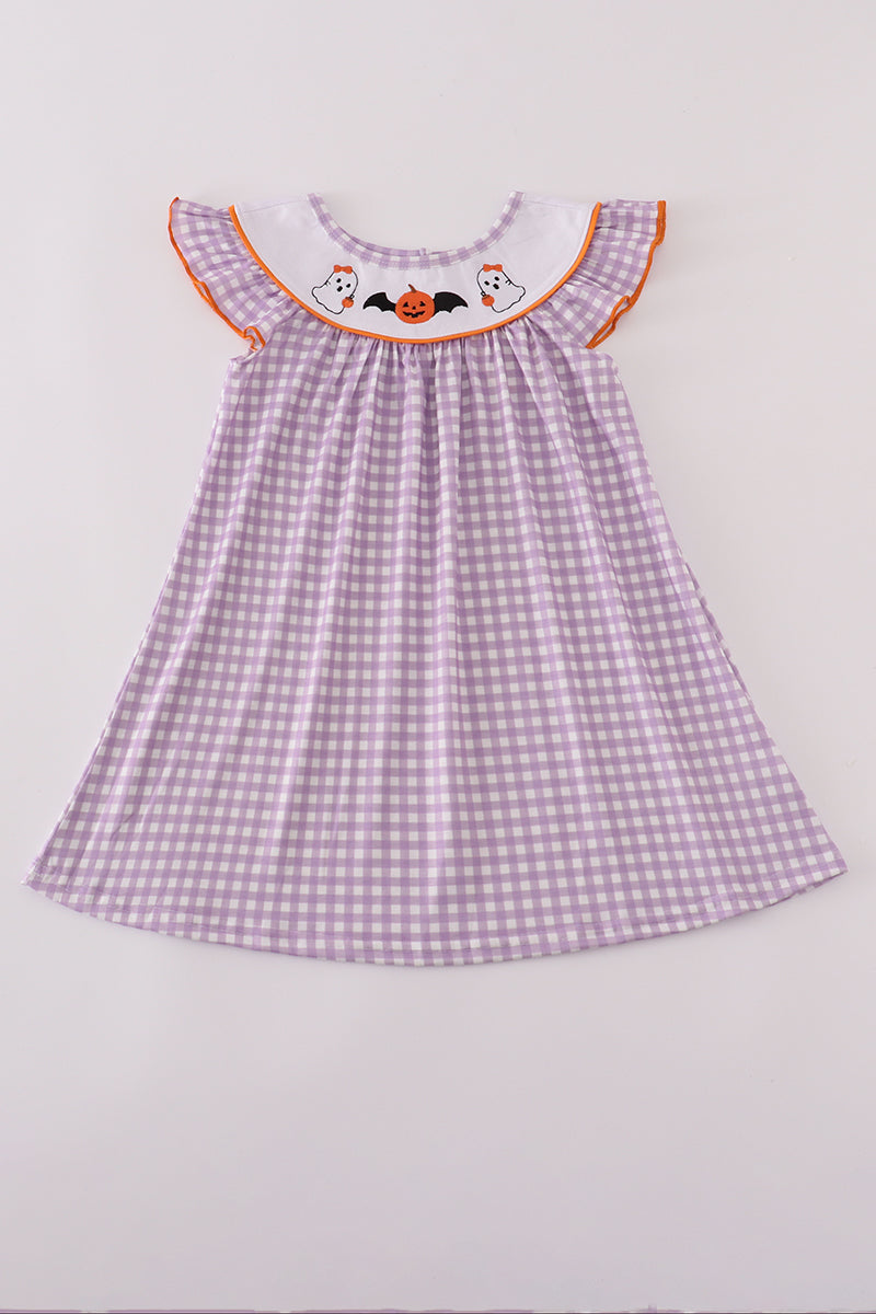 Purple Halloween pumpkin ghost embroidery dress
