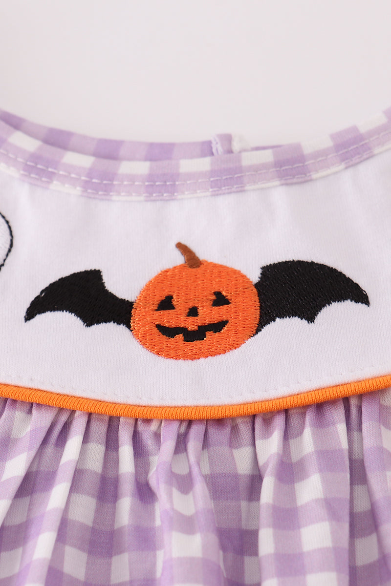Purple Halloween pumpkin ghost embroidery dress - 12 Months is backordered and will ship as soon as it is back in stock.