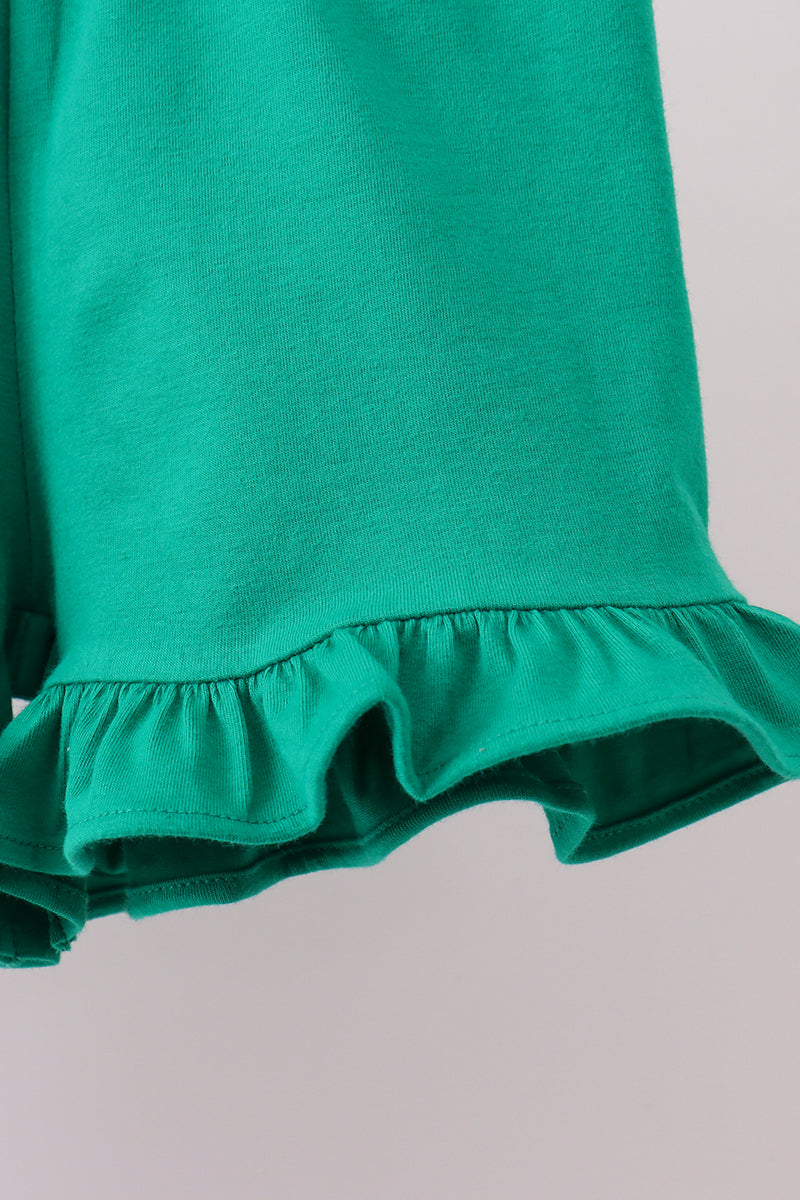 Pink golf cart applique stripe ruffle shorts set