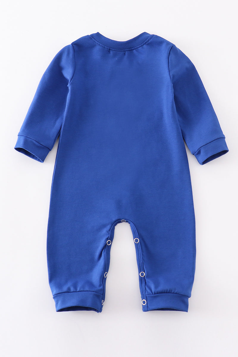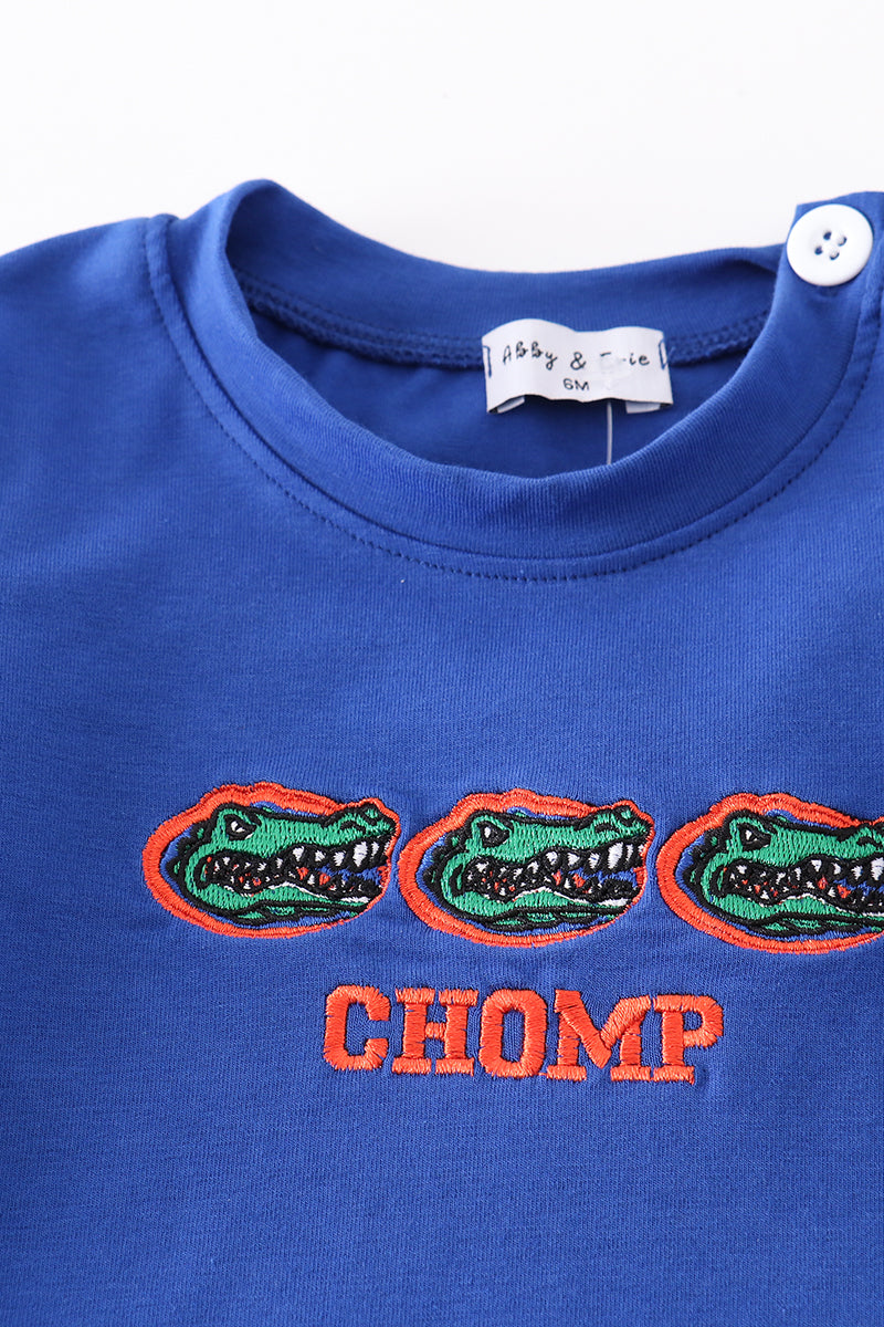 Blue chomp embroidery boy romper
