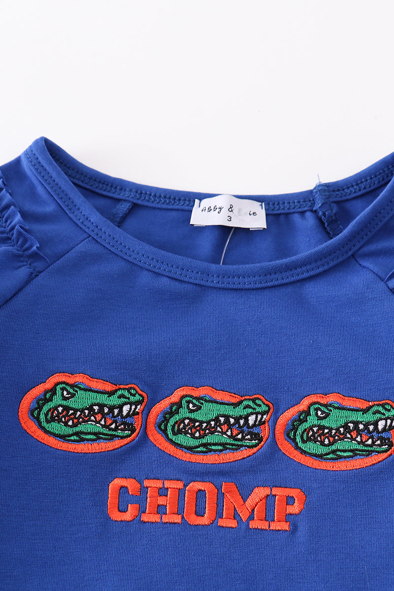 Blue chomp embroidery girl top - 5 is backordered and will ship as soon as it is back in stock.