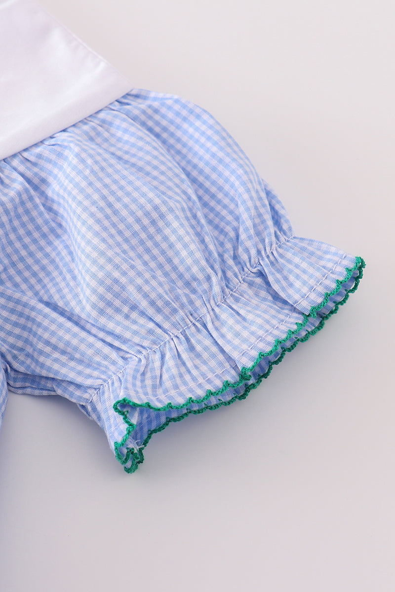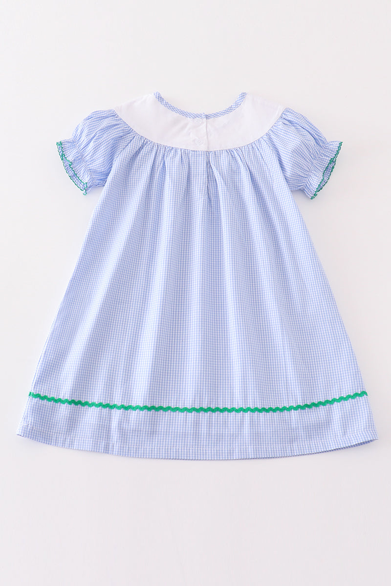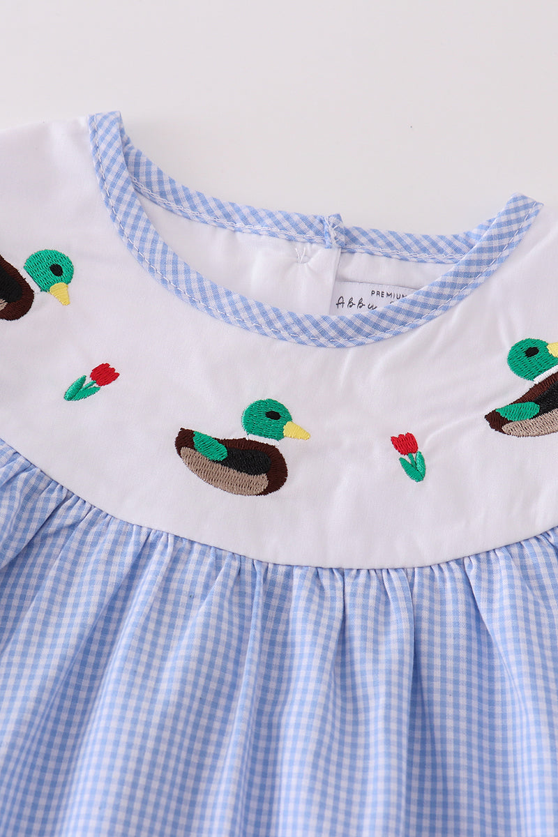 Quack up your little girl's wardrobe with this blue duck embroidered dress! A playful twist on a classic design, she'll be the cutest little duckling around. Perfect for any occasion, this dress is quack-tastic!
