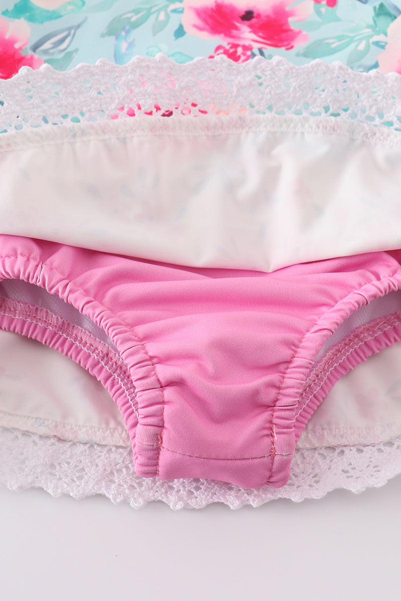 Blushing rose garden print girl one-piece leotard - NB is backordered and will ship as soon as it is back in stock.