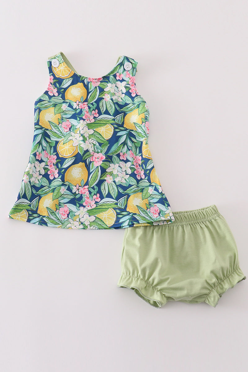 Greem lemon print girl bloomer set