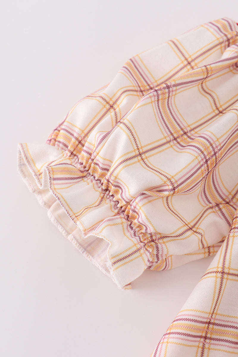 Khaki farm embroidery smocked plaid dress - 3 is backordered and will ship as soon as it is back in stock.
