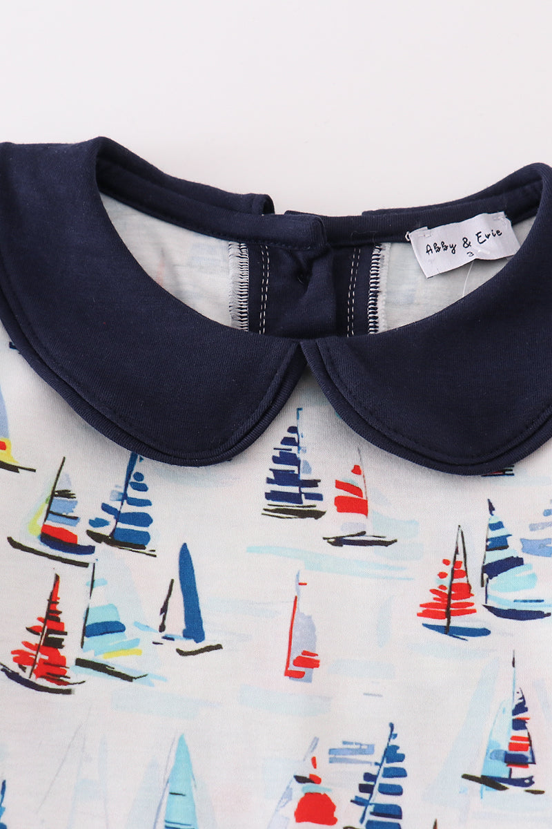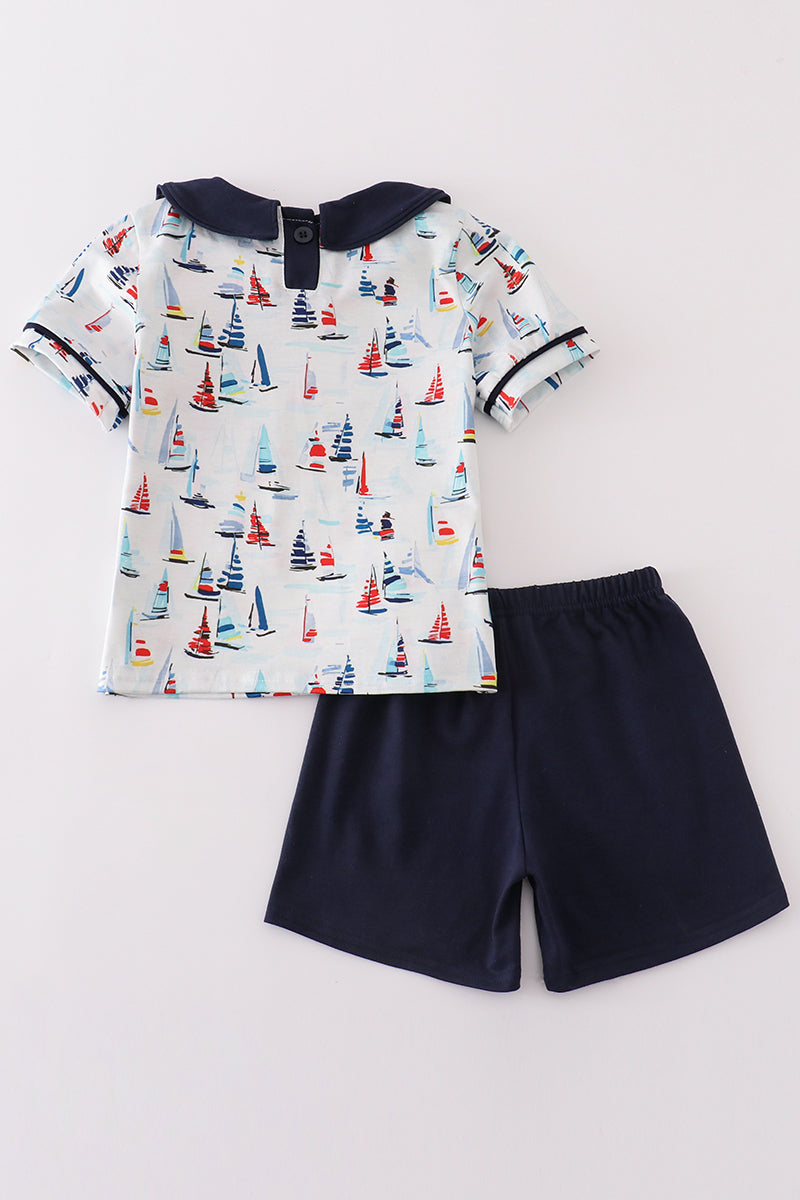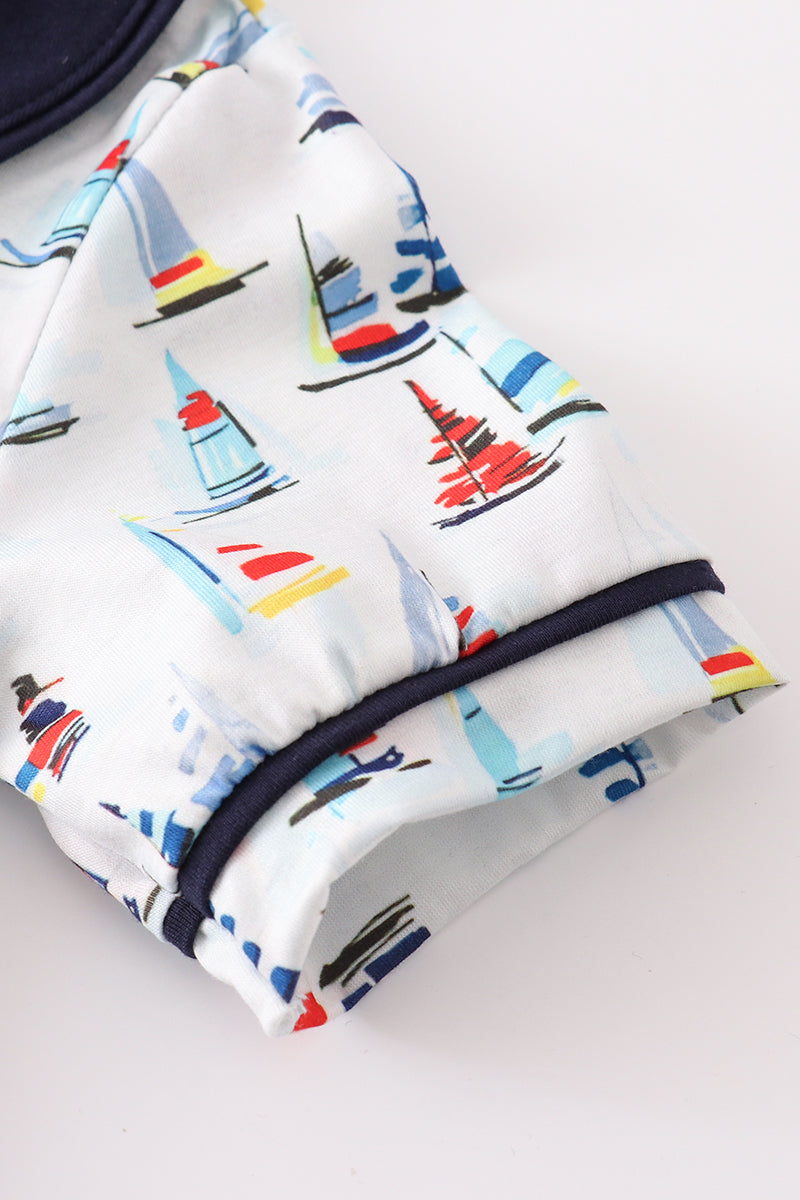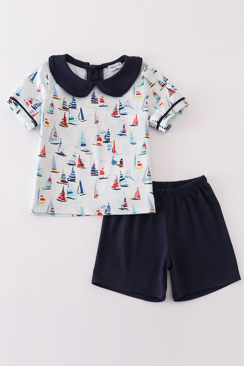 Navy sailboat print boy set - 6 is backordered and will ship as soon as it is back in stock.