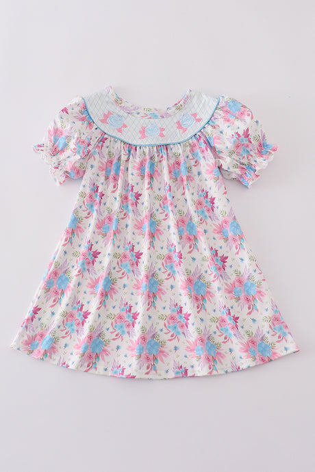 Vintage meadow print smocked...