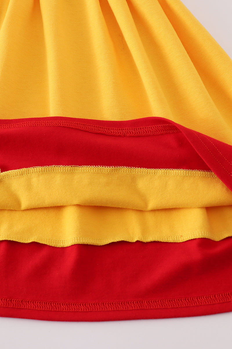 Apple embroidery bow ruffle dress - 2 Years is backordered and will ship as soon as it is back in stock.