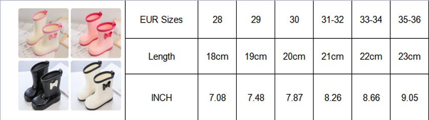 White & black bow rain boots