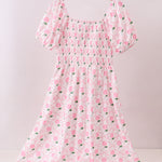 Pink bow hydrangea smocked women dress - S is backordered and will ship as soon as it is back in stock.