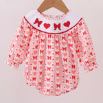 Adorable red heart bow smocked bubble that's perfect for little ones who love sweet, charming details. The smocked design adds texture and visual interest, while the playful heart bow brings extra personality to any outfit. Soft, comfortable fabric makes it ideal for all-day wear, whether for playdates, special occasions, or everyday adventures. A delightful piece that celebrates childhood style with a touch of whimsy!