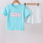 Blue shell starfish embroidery shorts set - 12 Months is backordered and will ship as soon as it is back in stock.
