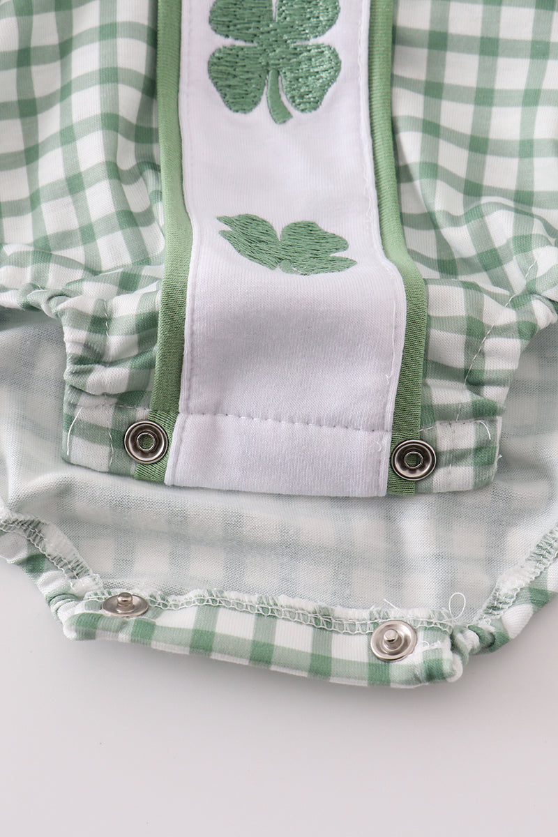 Green clover embroidery boy bubble - 2 is backordered and will ship as soon as it is back in stock.