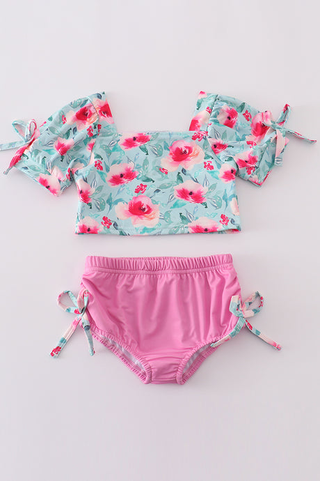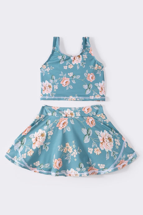 Teal floral print girl 2pc s...