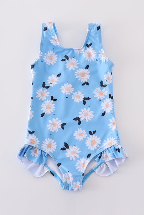 Blue daisy print one-piece g...