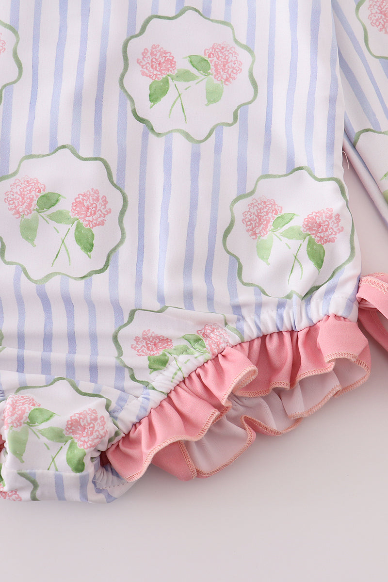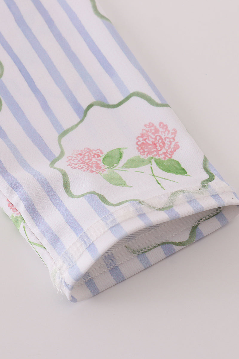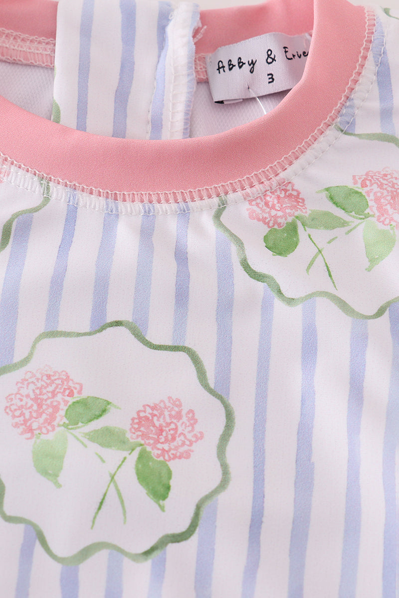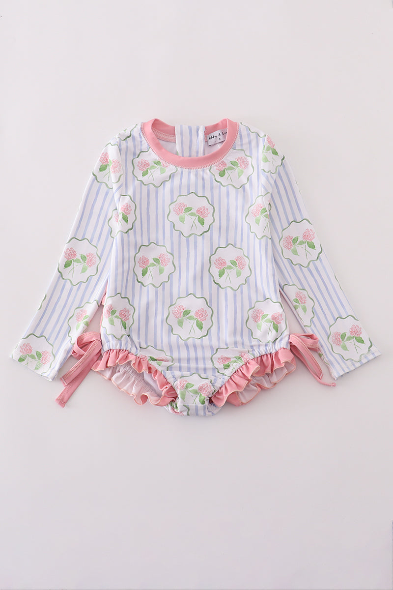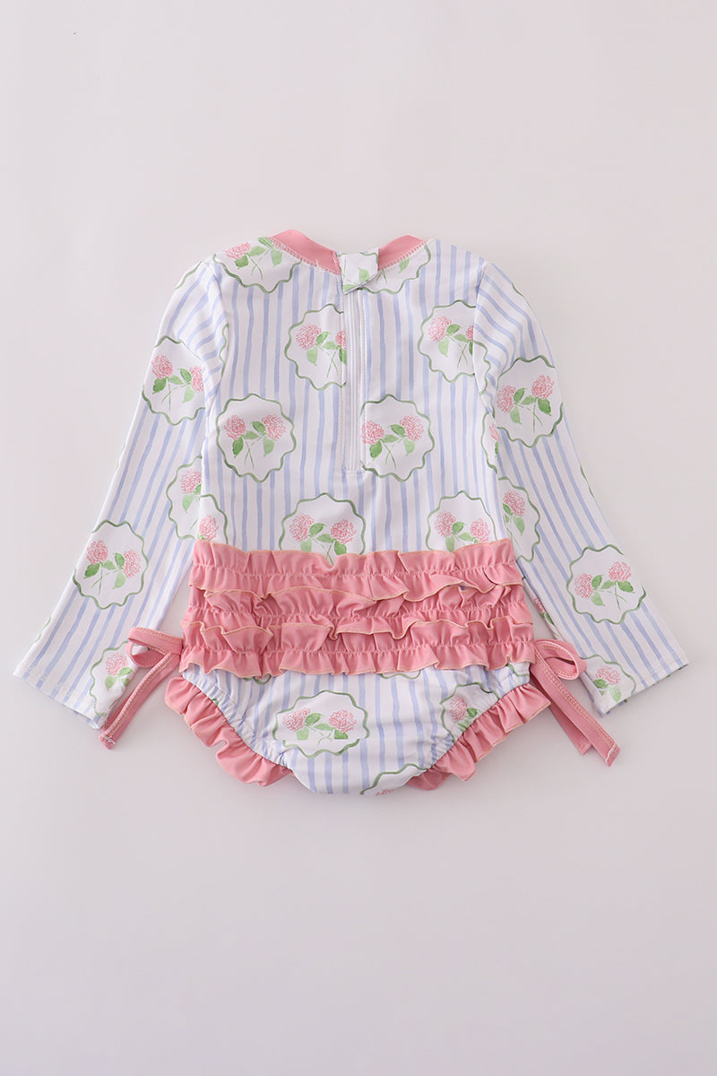 Floral stripe long sleeve swimsuit UPF50+