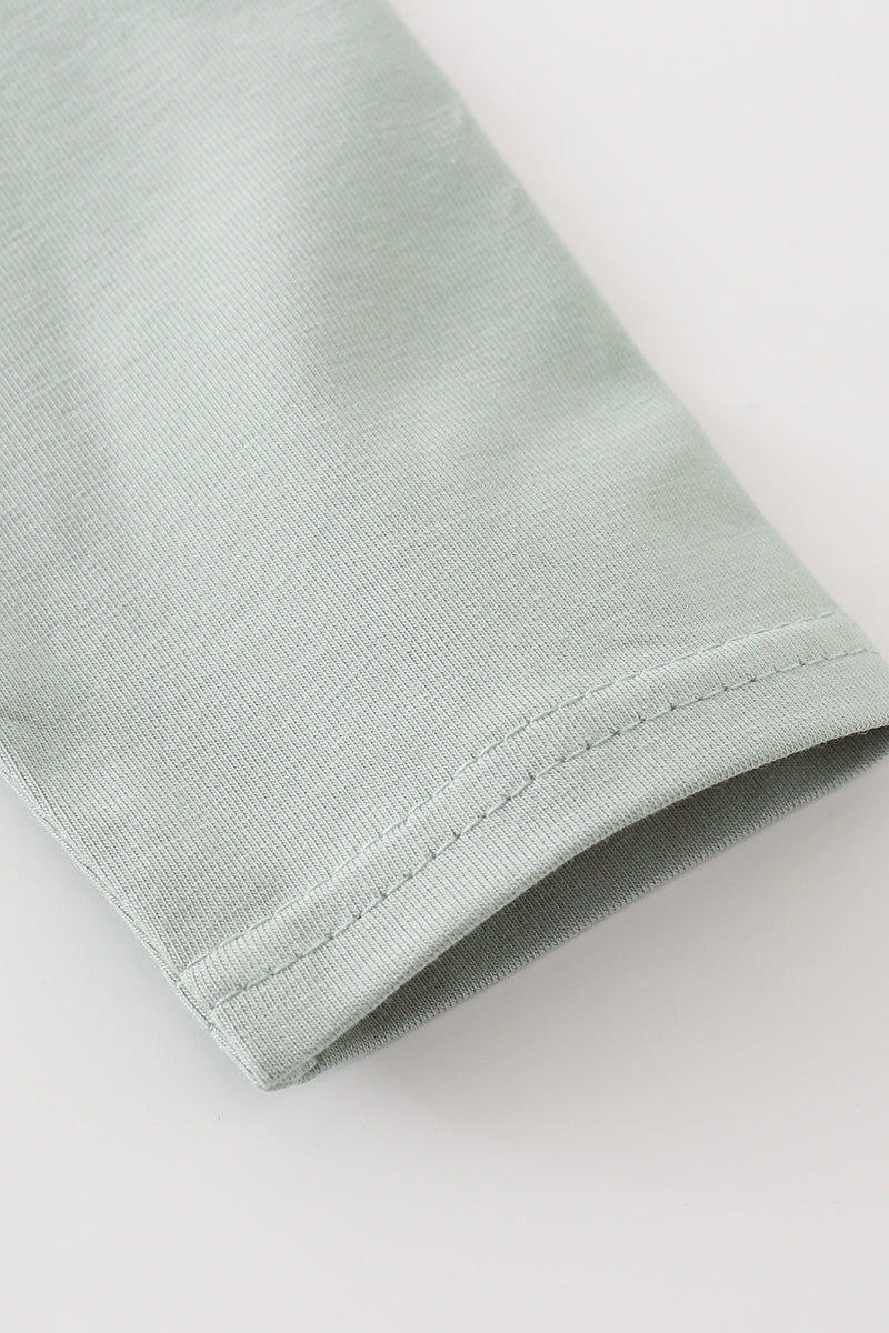 Get ready for the holiday season with this adorable green turkey embroidery girl set! Perfect for family dinners and photos, this set features an intricate turkey embroidery design that adds a charming touch. Made with high-quality materials, this set is comfortable for your little one to wear all day long. Gobble up the compliments with this unique and playful outfit!