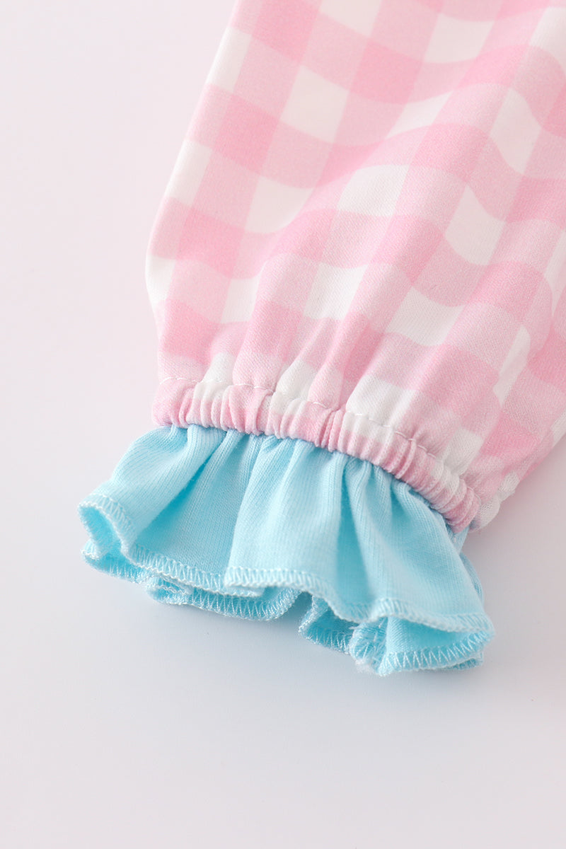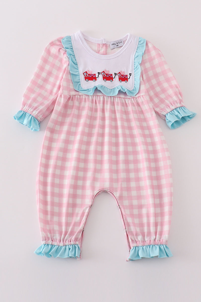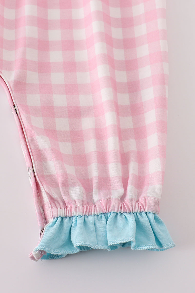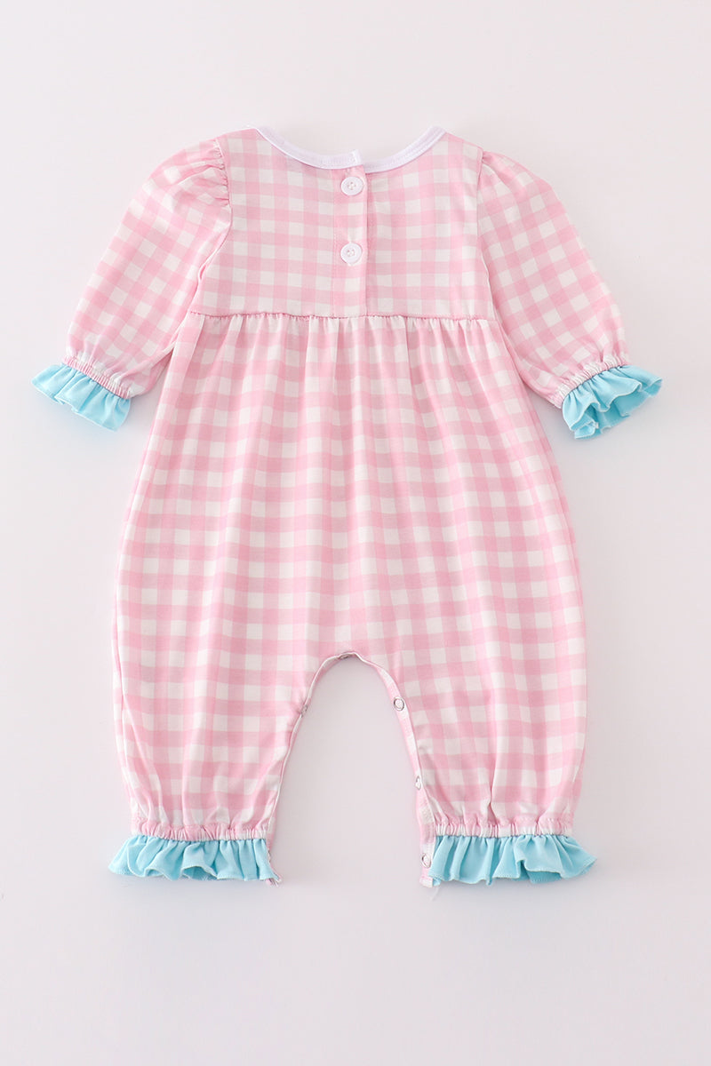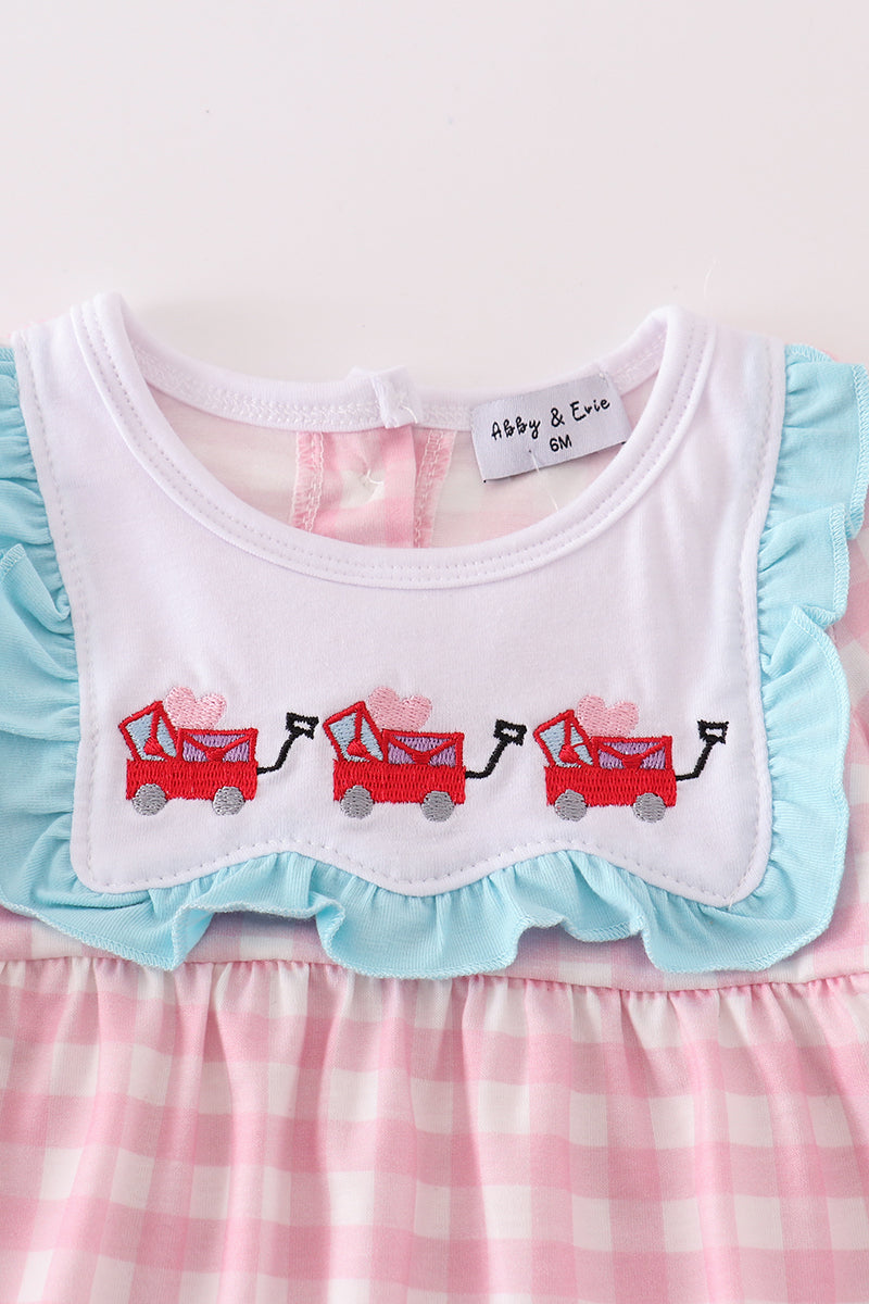 This romper is heart-stoppingly cute (literally)! Featuring adorable Valentine's Day heart envelope embroidery on a plaid pattern, your little girl will steal hearts wherever she goes. Perfect for a Valentine's Day photoshoot or a day out with loved ones.