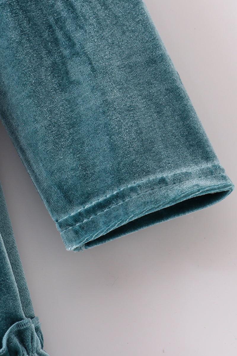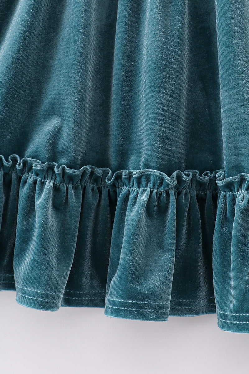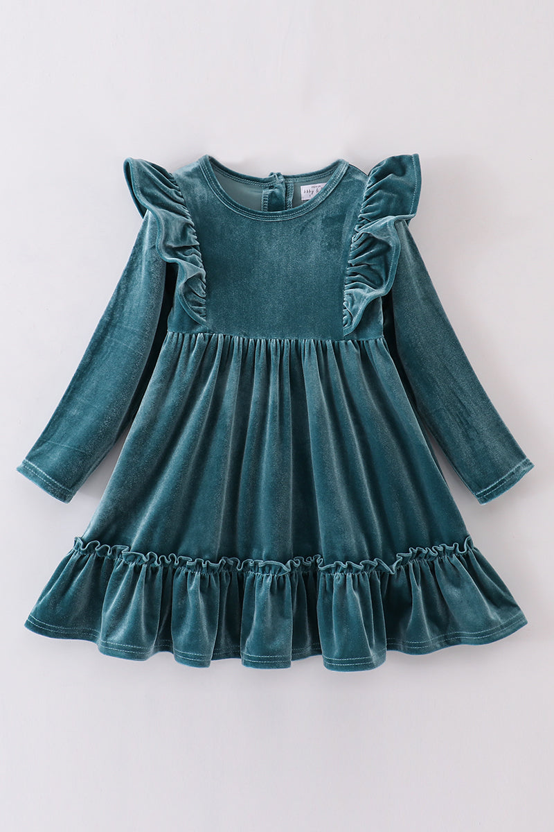 Premium Teal velvet ruffle dress - 7 is backordered and will ship as soon as it is back in stock.