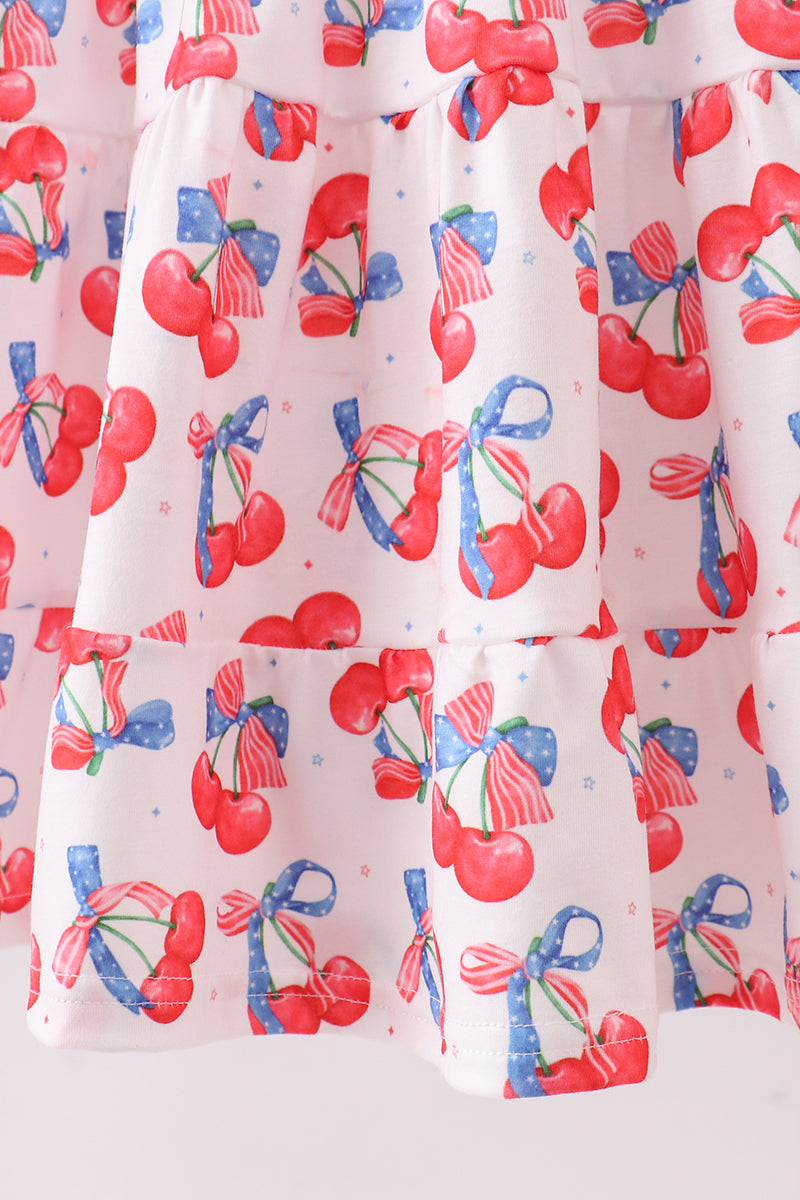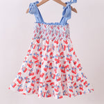 Blue cherry smocked tiered mom&me dress