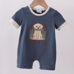 Blue puppy applique romper - 18 Months is backordered and will ship as soon as it is back in stock.